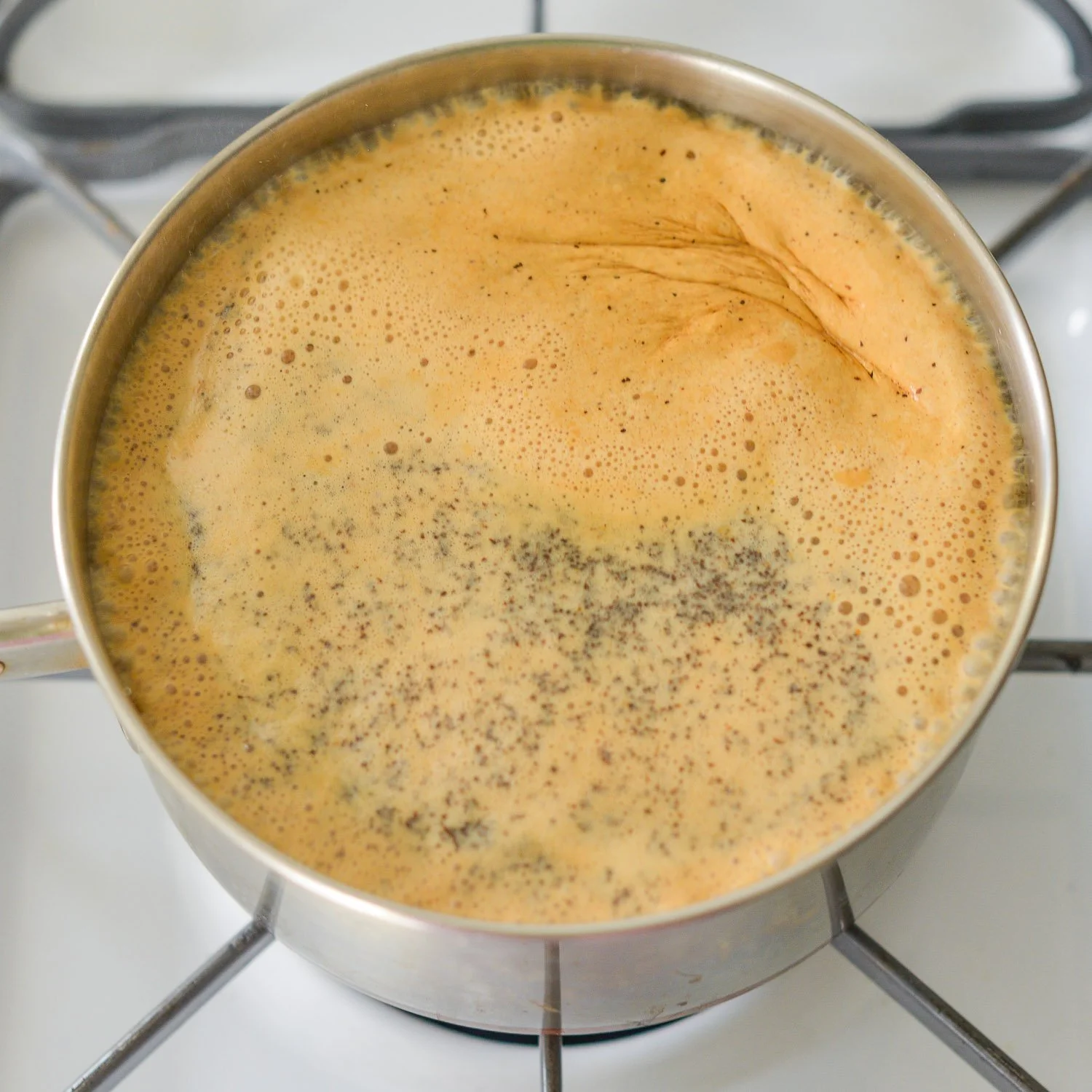 5. Let the milk boil until it's juust about to foam over. Turn down heat to medium-low and let simmer for another minute or two.