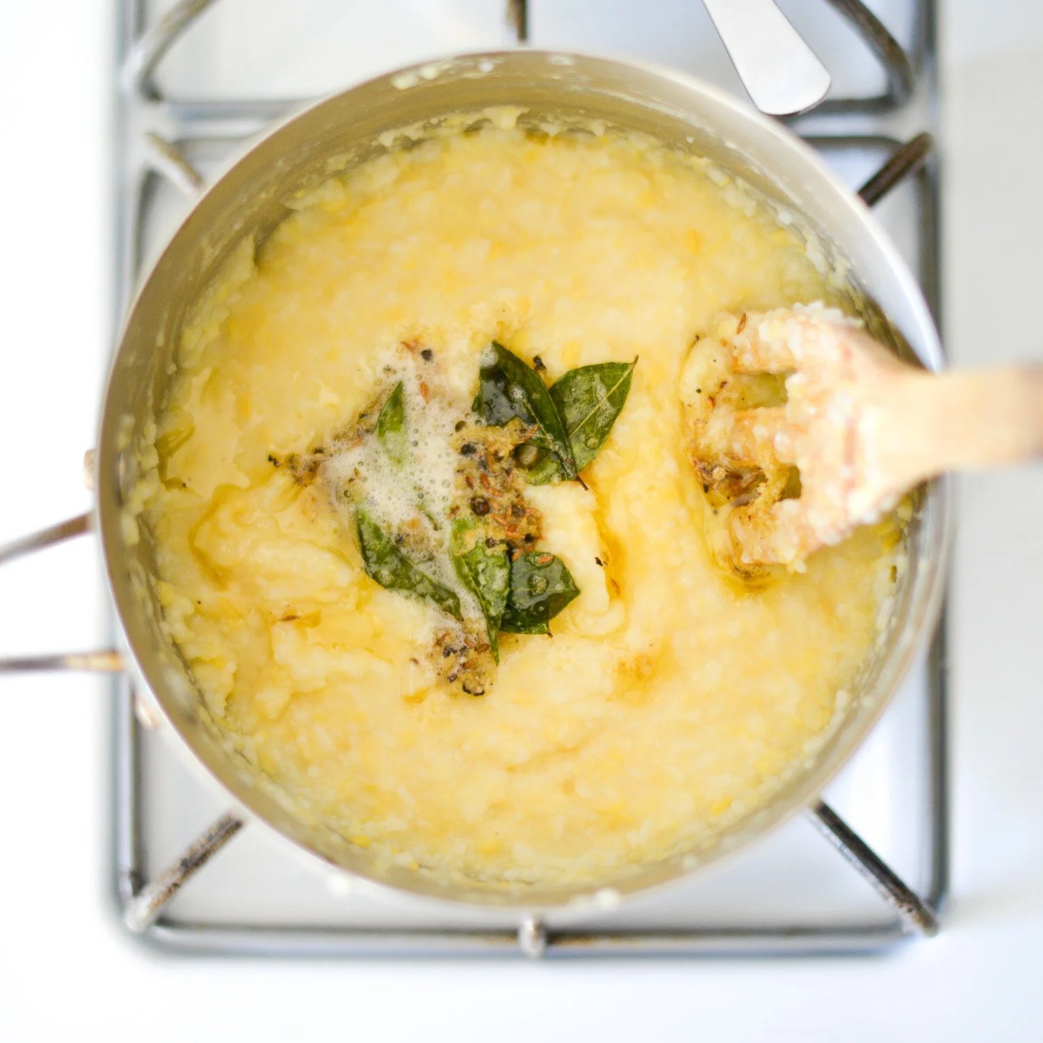 Sunday mornings are meant for PONGAL, not pancakes. It’s a South Indian breakfast staple that’s similar to congee - a thick rice porridge that sticks to your ribs in a “welcome home” type way. The ultimate comfort food, Pongal is generally served alongside vegetable pickle, coconut chutney, or sambar.
